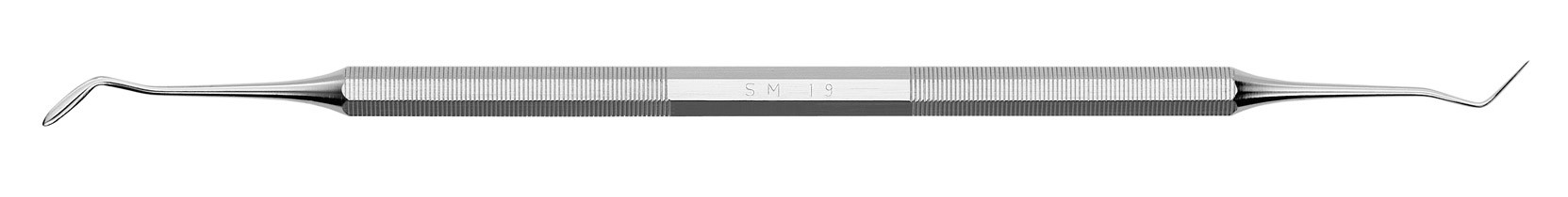 Entalhador fino, com bordas arredondadas e pontas pontiagudas.