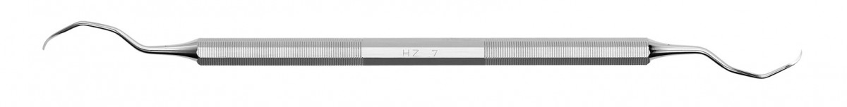 Cureta Gracey com lâmina muito curta para desbridamento invasivo mínimo de bolsas finas e profundas.