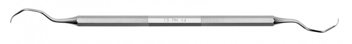 Cureta Gracey mais fina e mais curta que a clássica, para um desbridamento invasivo mínimo de bolsas finas e profundas.