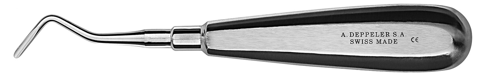 Elevador com uma alça ergonômica leve para uma boa fixação durante a extração do dente.