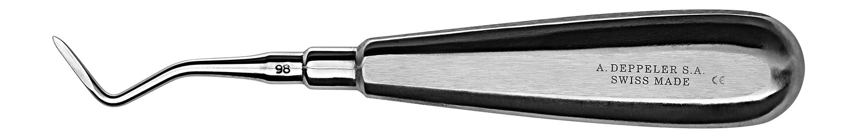 Elevador com um cabo ergonómico e leve para uma boa fixação durante a extração dentária.