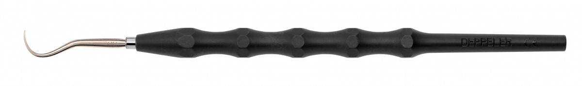 Cureta universal em titânio puro, 1 grau mais macio que o implante, na forma de Sickel, para o tratamento da peri-implantite.